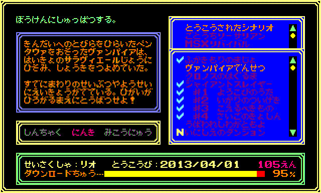 もちろん、BGMも全曲、全機種版(PC-98Beep、X1-Turbo PSG音源を含む)から選択できる。豊富な素材を組み合わせるだけで、自分だけのソーサリアン世界を自在に開発できるぞ。各種素材は、今後、素材ギャラリー「SOZAI 婆(ばあ)」でも続々追加の予定だ!